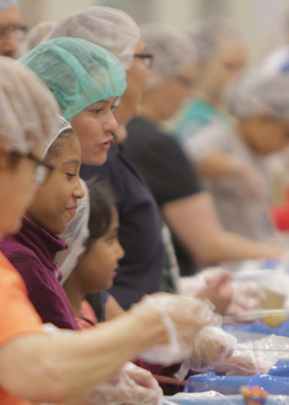 The church I went to would host meal-packing days dedicated to a mission they were involved closely with. Meal packing involves a small team of volunteers at each station. Each volunteer would have a job to do to create a meal pack from placing the meal bag to receive the ingredients, adding the ingredients to the bag, weighing, sealing, and packing the completed bag. Each meal was developed by food scientists to specifically stop malnutrition. I always enjoyed working with small teams to create the meal packs.